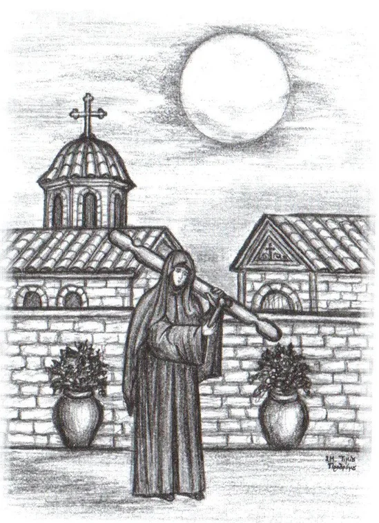 Вспомните старца Иосифа. Когда на него нападали скорби, он вел с ними брань, и за это к нему приходила благодать Божия. Он чувствовал у себя в душе Божественное утешение и видел созерцания. Как-то раз, находясь в сильной печали и страдая от этого, он пришел в созерцание. Он оказался на равнине, где земля была белой как снег. Он был в восторге, удивляясь красоте окружающего его пейзажа. В то время, как он искал путь, чтобы покинуть это место, — из-за страха, что ему нельзя находиться там, — он увидел врата, которые привели его в храм Богородицы. Там были молодые люди, отмеченные красным крестом на челе и груди. Один из молодых людей, похожий на военачальника, встал и подошел к иконостасу, где была икона Богородицы, и попросил Ее показать Свою благодать старцу, который терпел столько скорбей ради любви Божией. Внезапно старец Иосиф видит Богородицу во весь рост, так живо, в такой красоте и сиянии, что миллионы солнц не могли бы сравниться с красотой и светлостью Ее лика! Видите? Сначала скорбь и искушение, а потом приходит благодать и утешение.