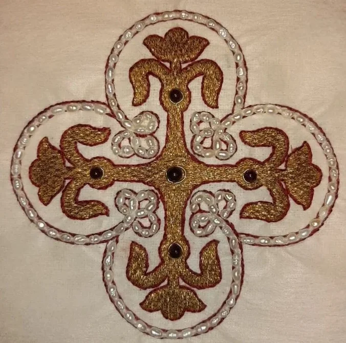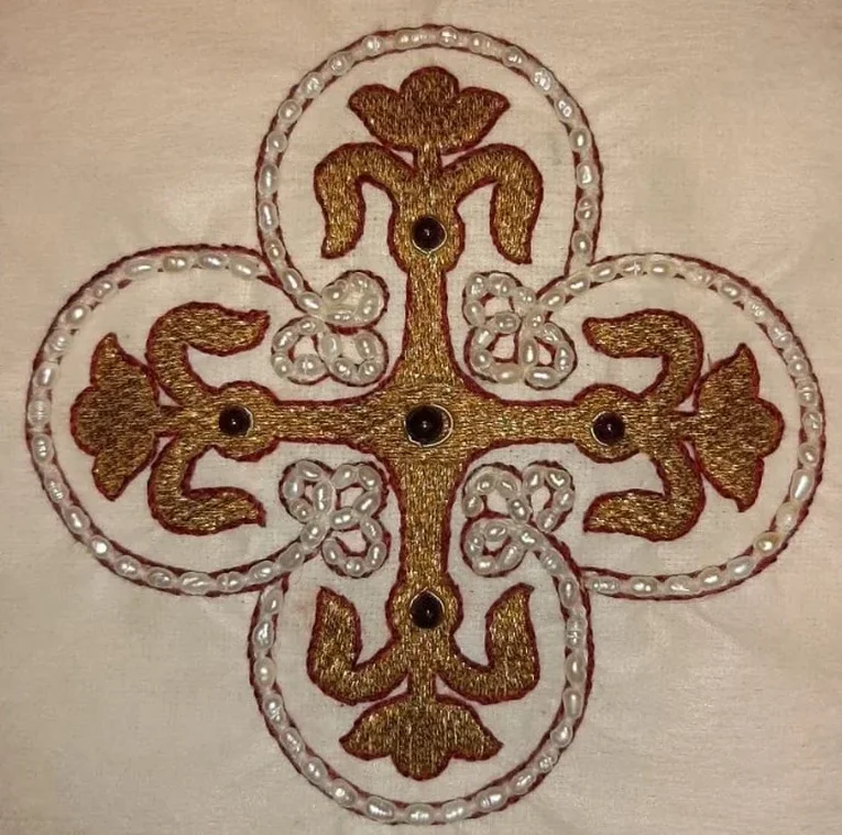 Это курс повышения квалификации по древнерусскому орнаментальному шитью. Он посвящен созданию сложной орнаментальной композиции «Крест в круге», являющейся основой литургических комплектов.