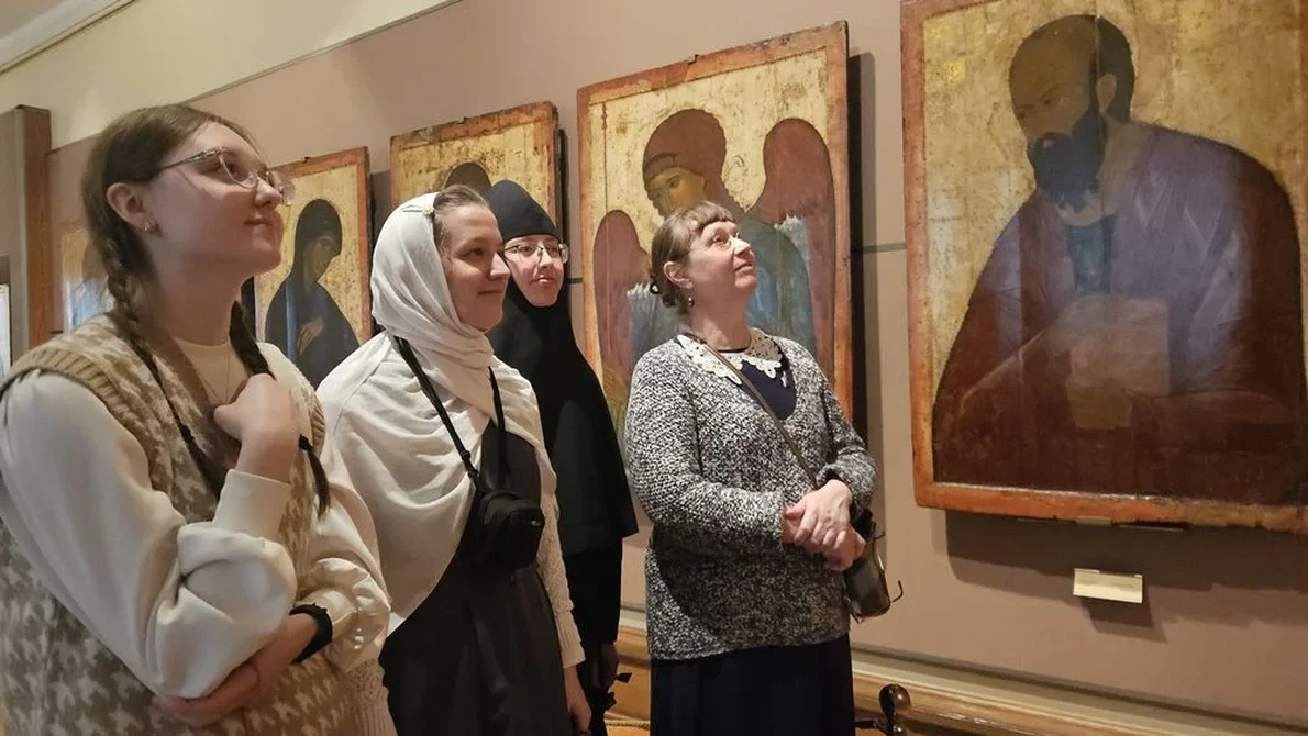 Студентки Первого православного колледжа специальностей Декоративно-прикладное искусство и Иконопись часто посещают музеи и выставки. 12 февраля состоялась поездка в Третьяковскую галерею. Преподаватель дисциплины «Технология и история церковной вышивки» Вера Борисовна Казарина ещё по дороге в Москву рассказывала о том, что такое икона, какой она может быть. Когда девочки попали на экспозицию, им было проще понять скрытые смыслы и символы. Они внимательно рассматривали древнерусские иконы, восхищаясь искусством мастеров и одновременно изучая технические особенности. Такой опыт обязателен для будущих иконописцев и вышивальщиц.