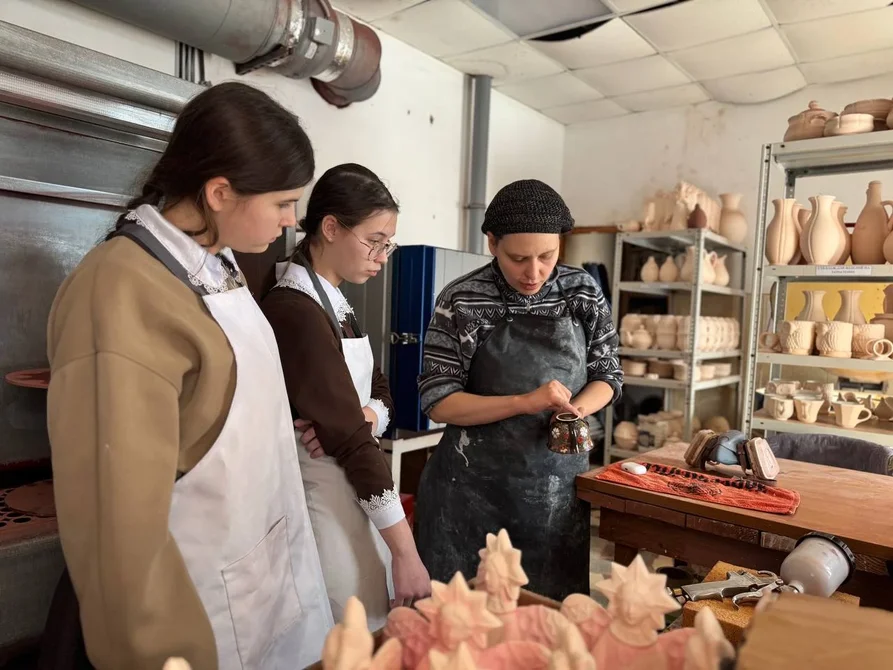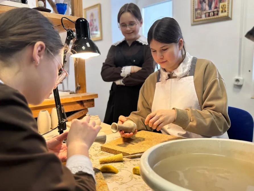 В рамках профориентации ученицы 8 класса «Доброй школы на Сольбе» посетили керамическую мастерскую монастыря.