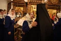 В конце службы священники освящают куличи, яйца и пасхи прихожан. Матушка игумения Еротиида лично поздравляет каждого из присутствующих, дарит символ праздника – красное яйцо и пасхальную открытку. А затем приглашает всех в большую трапезную, где гостей уже ждут накрытые столы.