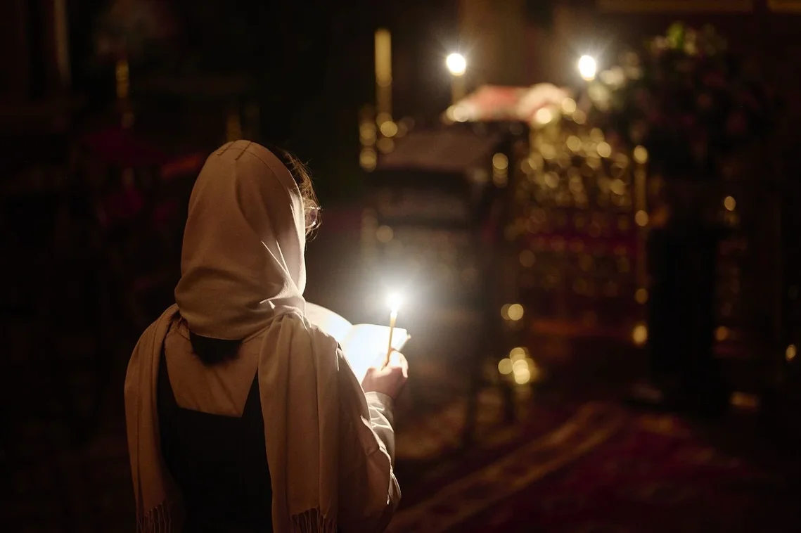 Иногда мы мысленно преклоняем колени, припадаем к ногам Христовым и обнимаем их, как святая Мария Магдалина, которая, как изображается на иконах, от великого благоговения покрыла свои руки одеждами, чтобы прикоснуться к Его пречистым стопам через ткань. Оттуда мы возносим свою душу в рай, к обителям святых.