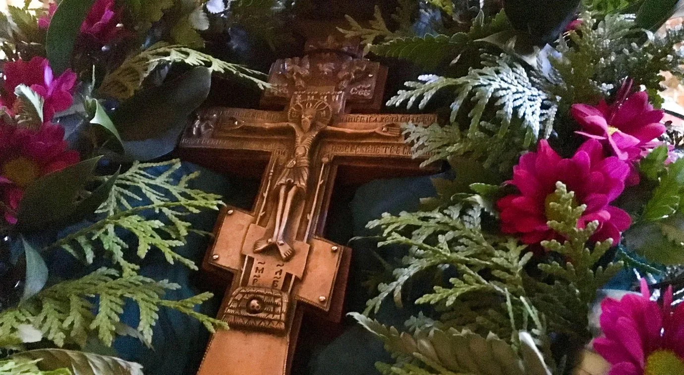 Мы сегодня вспоминаем праздник Креста Господня, день, когда вся тварь как бы замирает в молчании, в трепетном ужасе о том, что Бог стал человеком для того, чтобы умереть, и умереть за нас, умереть с нами и всю мертвость земли унести с Собой.